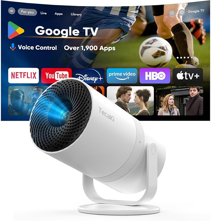 Experience the future of home entertainment with the Tecaki Mini Projector, a cutting-edge device that seamlessly integrates Google TV and AI voice control. This portable projector is designed for those who crave versatility and convenience, allowing you to transform any space into a cinematic experience. With over 1,900 certified apps at your fingertips, you can easily access your favorite streaming services, games, and more, all from the comfort of your couch or on the go.